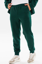 Брюки мужские спортивные. Боковые карманы и карман сзади на молнии. Спереди, около кармана небольшой принт в виде надписи. По боковому шву однотонные лампасы. Низ на манжетах.