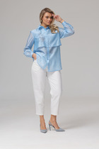 Брюки из плотного костюмного крепа с высокой посадкой. В боковых швах предусмотрены функциональные карманы. Застегивается изделие на молнию и пуговицу. Комплектуется широким поясом с пряжкой.