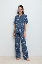 Брюки свободного прилегания, зауженные к низу. Мягкий пояс на кулисе. Пояс декорирован люверсами и бархатным шнуром с металлическими наконечниками.