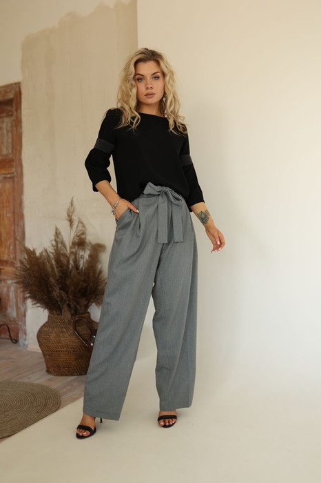 Широкие брюки со складками. В боковых карманы, пояс съемный