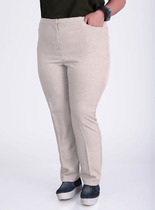 Брюки классического покроя с завышенной линией талии, с боковыми функциональными карманами по переду, с притачным поясом, в который вшиты две эластичные ленты по спинке .