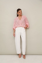 Натуральный хлопок, брюки на резинке. Идеальное решение в жаркую погоду. Немного заужены к низу. Без застежек. Рабочие карманы по бокам.    Замеры для  (48) размера. Длинна брюк: 92 см.  Для размера 54: ОТ - 107см +растяжка на резинку20 см.Длина-95