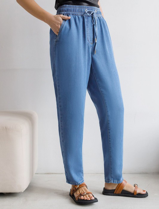 Брюки бананы с поясом на резинке из джинсового лиоцелла
