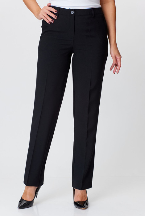 Брюки прямые,классические, с заутюженными стрелками,по переду обработаны карманы с отрезным бочком,застежка на тесьму-молнию и 1 пуговицу.На задних половинках обработаны вытачки и имитация карманов с листочкой, пояс в брюках притачной. Длина брюк от талии по боковому шву 100 см. К брюкам рекомендуем жакет 203-арт. 2 78 22 или 205-арт. 2 80 22
