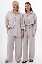 Брюки-джинсы немного заужены к низу. На притачном поясе со шлёвками, застежкой-гульфик. Пояс застегивается на петлю-пуговицу. По переду карманы и рельефы. По спинке кокетка, накладные карманы и рельефы.