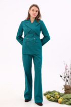 Особенностью модели является высокая посадка брюк с облеганием по фигуре.