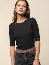 Vilatte Футболка из трикотажа в широкий рубчик D49.042 черный