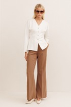 Брюки женские, длинные. Застежка на молнию в левом боковом шве.
