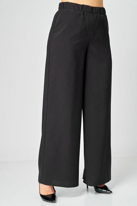 Брюки женские шикарного кроя "палаццо" на притачном поясе. Пояс по кругу на широкой резинке, что дает возможность чувствовать свободу движений. В боковых швах обработаны карманы, коротые дополняют функциональности модели и удобсто в носке.