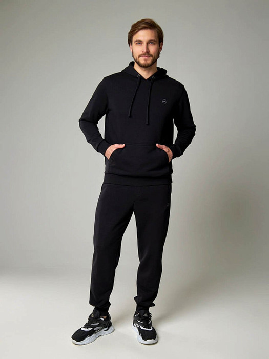 Трикотажные мужские брюки из хлопка с добавлением полиэстера, мягкие и приятные на ощупь, не сковывают движения, обеспечивая максимальный комфорт. На передних половинках вместительные карманы. По низу брюки собраны мягкой трикотажной резинкой. Пояс на резинке. Дополнительно в поясе имеется шнур.