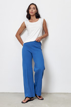 Брюки- гофре расширенного силуэта, с отрезным поясом, без застежки, верх брюк присборен на резинку. Брюки без боковых швов.