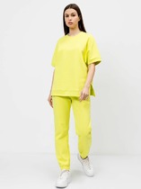 Брюки прямого силуэта из трикотажного полотна “замша”. По верху притачной пояс с застежкой на петлю и пуговицу и шлевками для ремня. На передних половинках обработаны карманы, канты и застежка молния в среднем шве, на задних – вытачки. По поясу задних половинок брюк эластичная тесьма (резинка). Обращаем ваше внимание, что фурнитура может отличаться от фото. Декоративный элемент - цепочка в комплектацию не входит.