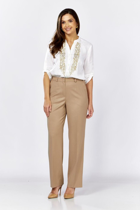 Брюки женские классические. Спереди застёжка на молнию и пуговицу.Сзади вытачки. В боковых швах карманы с отрезным бочком.Пояс по спинке на резинке , дополнен шлёвками.