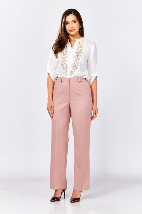 Брюки женские классические. Спереди застёжка на молнию и пуговицу.Сзади вытачки. В боковых швах карманы с отрезным бочком.Пояс по спинке на резинке , дополнен шлёвками.
