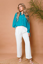 Брюки свободные на манжете с боковыми функциональными карманами на притачном поясе, в который продета эластичная тесьма резинка .  Передние половинки брюк с вертикальными подрезами.