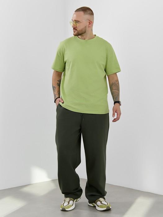 Брюки мужские из трикотажного полотна "интерлок-пике", на притачном поясе с эластичной тесьмой внутри, с карманами в боковых швах. Низ брюк прямой с подгибкой. Для регулирования степени прилегания изделия по линии талии предусмотрен декоративный шнурок, вставленный в пояс и продетый через две обметанные петли в центре.