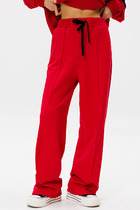 Брюки прямого кроя, с карманами.По переду боковой карман, застежка на тесьму-молнию и пуговицу. По спинке верхний срез представлен резинкой.