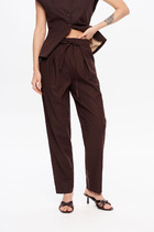 Детали: эластичный пояс, высокие разрезы, без застежки, без карманов, брюки на подкладке из основной ткани.