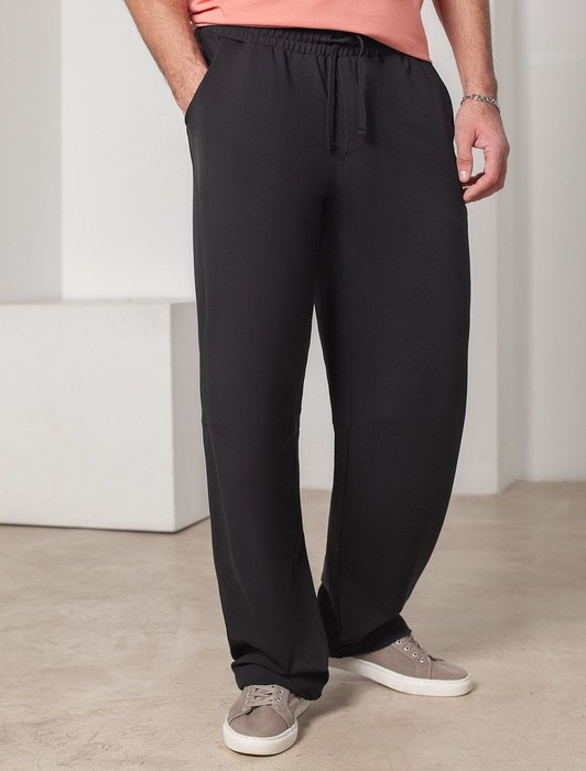 Состав: 95%Хлопок 5%ПУ Плотность: 240 Г/м2 Размер товара на первом фото: 42Свободные брюки черного цвета с эластичным поясом на резинке и шнуром с металлическим наконечником изготовлены из премиального футера двухнитки. Натуральная ткань, в составе которой хлопок и эластан, отличается дышащими свойствами и мягкостью на ощупь, обеспечивает комфорт и удобство в повседневной носке. Трикотажные брюки сохраняют свой первоначальный вид после многочисленных стирок, что делает их практичными для активного использования. Повседневные брюки дополнены карманами по бокам и одим задним карманом на молнии, что позволяет удобно хранить необходимые мелочи. Внизу расположены затяжки на стопорах, тем самым можно регулировать посадку под индивидуальные предпочтения каждого мужчины.