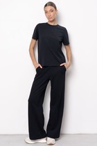По спинке брюки оснащены резинкой, что позволяет добиться комфортной посадки по фигуре. В боковых швах есть карманы.