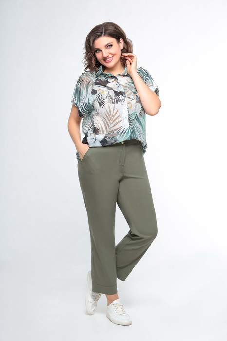 Брюки женские прямого силуэта. Выполнены  из турецкого денима. Брюки - с притачным поясом и резинкой по спинке. По переду  обработаны боковые карманы. Застёжка -  на тесьму-молнию и пробивную пуговицу. По задним половинкам  брюк расположены накладные карманы.  Длину брюк можно регулировать подворотом.