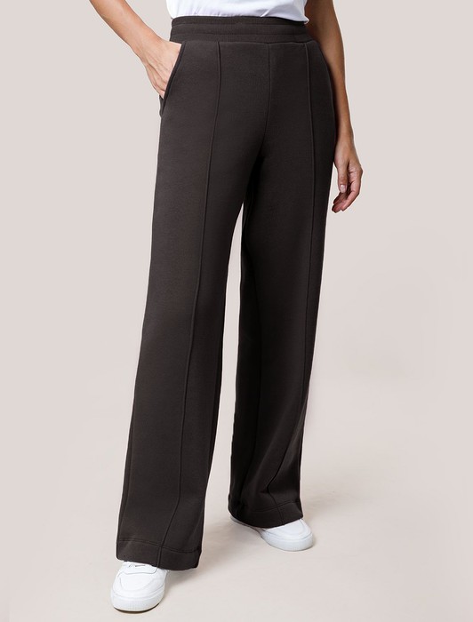 Теплые брюки прямого кроя с удобным поясом на резинке и карманами по бокам выполнены из премиального футера-трехнитки. Наличие эластана в составе гарантирует комфорт и долговечность изделия, материал хорошо пропускает воздух, позволяя телу дышать, а мягкий начес обеспечивает дополнительное тепло и комфорт в прохладную погоду.