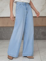 Vilatte Широкие джинсы с защипами из эластичного денима D54.307 голубой