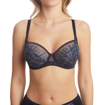 Комфортный бюстгальтер из неэластичного кружевного полотна. Боковая деталь чашек на дубляже с хлопком.