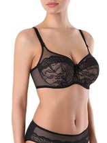 Бюстгальтер с мягкой чашкой на каркасах. Бретель продублирована поролоном для лучшей поддержки. Внутренняя корректирующая деталь собирает грудь к центру. Из полотна с добавлением хлопка для большего комфорта. Состав: ПА 55%, Хлопок 33%, Эластан 12%