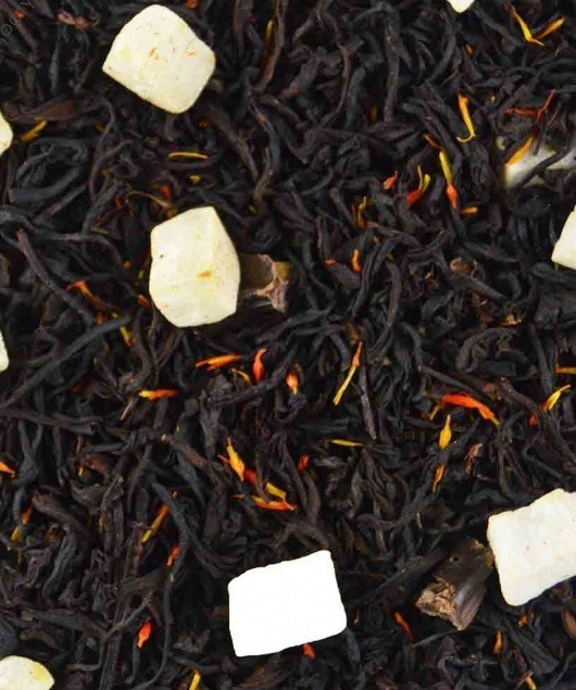 Состав: Купаж из классических черных индийских чаев с добавлением плодов рожкового дерева, кокосовых цукатов. Содержит пищевые ароматические масла.