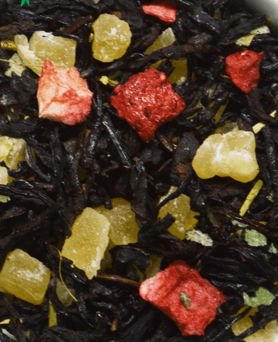 Купаж из классических черных индийских чаев с добавленем цукатов и сублимированных кусочков земляники, ароматические масла.