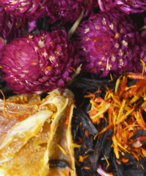 Купаж на основе черного Кенийского чая с добавлением сегмента апельсина, цветков гомфрены, лепестков сафлора. Содержит пищевые ароматические масла.
