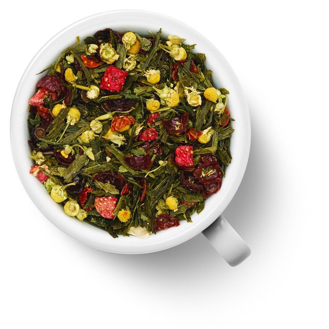 Краткое описание: Зеленый чай,кусочки шиповника, цветы ромашки, листья крапивы, кусочки корицы и клубники. Ароматизирован натуральными маслами. Сорт высший.