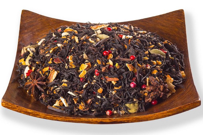 Черный чай с ароматной цедрой апельсина, кусочками яблок, корицой, гвоздикой, гибискусом, имбирем и бадьяном. Все это сочетание дает горьковатый, но нежный аромат с корично-цитрусовыми оттенками вызывает ассоциации с горячим, зимним напитком.
