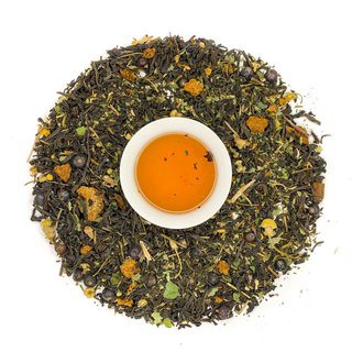 Душистый чай с хвойным древесным ароматом и нотами разнотравья. Купаж крупнолистового чая Ассам, ягод можжевельника, ромашки, листа березы, липы, чаги и пихты. Без ароматизаторов.