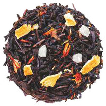 Ароматный черный чай с кусочками ананаса, персика, клубники, лепестками роз и цедрой апельсина с ароматом клубники со сливками
