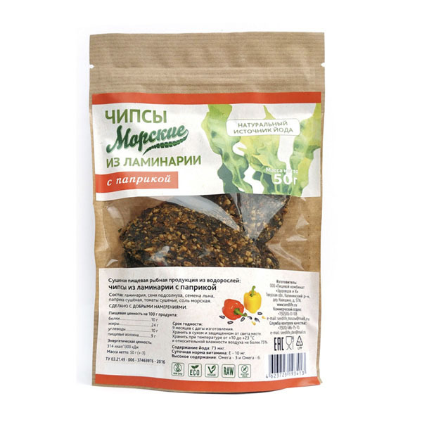 Совместные покупки Пермь Товары для здоровья Для иммунитета, при простуде — Чипсы морские из ламинарии с паприкой, 50 г