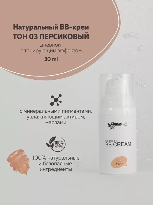 BB-крем с минеральными пигментами обладает легкой текстурой, равномерно распределяется и быстро впитывается, хорошо подстраивается под тон кожи. Средство создаёт невесомое полупрозрачное покрытие, не оставляет липкости и жирного блеска, не забивает поры. Макияж выглядит естественно и незаметно. В составе — только натуральные и безопасные компоненты.