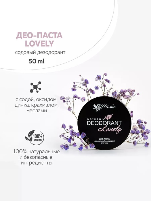 Натуральный содовый дезодорант для тела LOVELY эффективно защищает от пота и неприятного запаха, дарит ощущение свежести и комфорта на весь день.