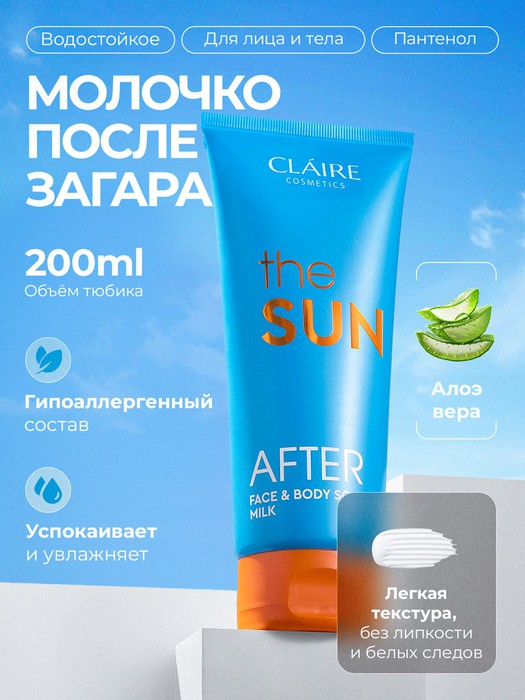 CLAIRE Молочко успокаивающее для лица и тела после загара, 200 мл (2228)