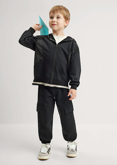 Удобные брюки из мягкого футера для мальчика с декоративными рельефами в области колен. Модель оснащена накладными карманами, эластичным поясом с регулировкой по талии для комфортной посадки.Сочетай брюки с футболками и толстовками из новой коллекции!