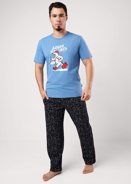 Мужские домашние брюки из хлопковой кулирной глади в набивку. Мягкие и комфортные, прекрасно держат форму и не сковывают движений. Отличное решение для создания стильного образа на каждый день.