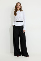 Брюки зауженные из поливискозного трикотажного полотна джерси. Притачной пояс со шлёвками, по спинке на внутренней резинке. Спереди гульфик с молнией и крючком. Боковые карманы с отрезным бочком.
