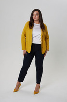 Брюки зауженные из искусственной кожи. Притачной пояс с гульфиком, застежкой на молнию и кнопку. Боковые карманы с отрезным бочком. По спинке кокетка и накладные карманы. По линии колена горизонтальные резы.
