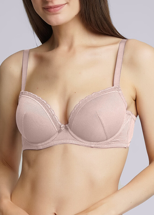 Бюстгалтер с формованной чашкой без push-up, с косточками. По верху чашки модель декорирвана кружевом.