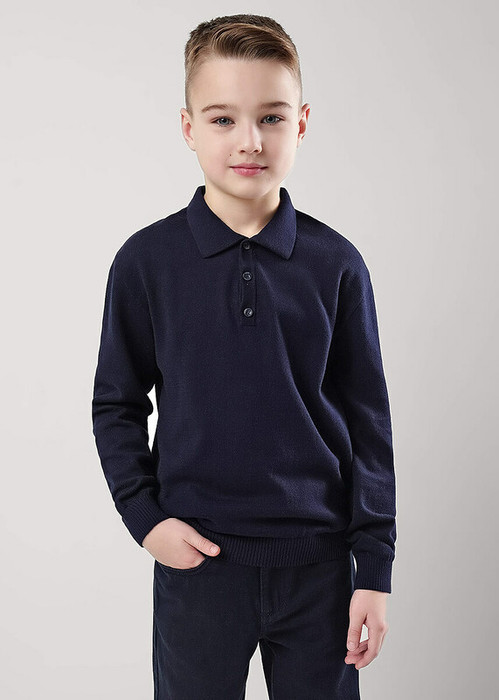 Стильное вязаное поло отлично дополнит повседневный гардероб. Модель выполнена из 100% хлопка и отлично сочетается с джинсами и школьными брюками.