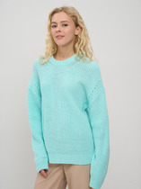 Вязаный джемпер прямого силуэта из акриловой пряжи с добавлением хлопка. Длинный втачной рукав. По низу рукава и изделия манжеты. Основное переплетение жаккард. Округлая горловина с бейкой.