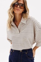 Джемпер прямого силуэта из поливискозного трикотажного полотна джерси. Спущенный длинный рукав. По горловине отложной вязаный воротник с планкой. Боковые разрезы.