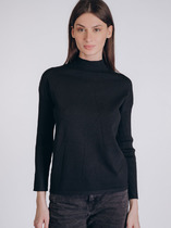 Джемпер прямого силуэта из плотного хлопкового трикотажного полотна с втачным длинным рукавом. Округлая горловина с обтачкой. По переду горизонтальный рез. По низу рукава шлица с внутренней контрастной манжетой.
