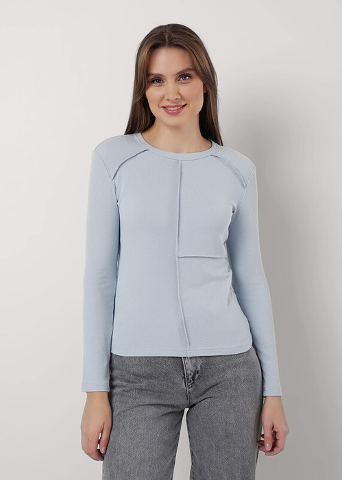Фуфайка из эластичного трикотажного полотна кошкорсе. По переду декоративные резы со швами наружу. Округлая горловина с обтачкой. Длинный втачной рукав.